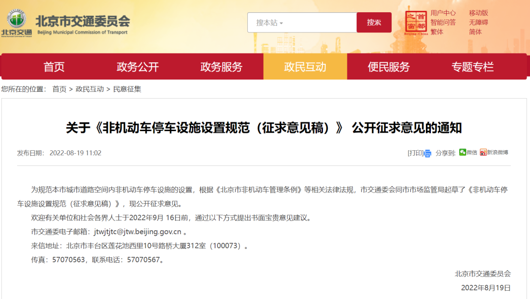 据北京市交通委员会官网消息,日前,北京市交通委就《非机动车停车设施设置规范》征求意见,规定交通枢纽、轨道交通车站出入口周边空间不足的,应首先取消两侧50米至100米范围内路内机动车停车位,设置非机动车停车设施。