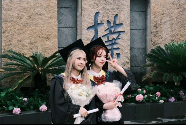 两名女生不远万里从英国飞回上海参加毕业典礼。上海海洋大学供图 2020年、2022年受疫情影响,全国多所高校未能举办线下毕业典礼,这成为不少当届毕业生心中的遗憾。上海海洋大学校长万荣曾在去年向学生们承诺:学校将适时补办隆重的毕业典礼,让大家的大学生活不留遗憾。