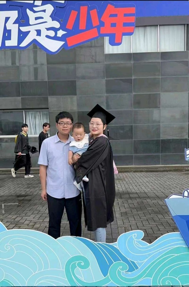 杨欢欢带着她的“小海娃”回母校参加毕业典礼。上海海洋大学供图 补办的毕业典礼还出现了特殊的“小校友”。2020届金融学专业毕业的杨欢欢,把自己八个月的孩子也带到了典礼上。多个“小海娃”的出现,让现场欢乐的氛围更加浓烈。 “中奖的奖品是校园草坪婚礼券,但有效使用期为一年好不好?”毕业典礼晚会上,校长万荣在抽奖环节满面笑容地问大家。 “不行不行,来不及。”毕业生们笑了。 “那三年呢?”万校长又问。 毕业生们再次哄堂大笑:“校长,真赶不上!” “那就约定九年的有效期吧,就这么一言为定了!”万校长抽出了中奖者。 记者注意到,整个6月,上海海洋大学校园内的毕业氛围感拉满了。针对6月的毕业“高峰”,除相关部门倾心倾力以外,连保安大叔、宿管阿姨也都开始“互卷”起来。 宿舍的大厅和校门口,物业公司精心布置了“人生永远有告别,但我们永远有期待”的彩虹步道和彩虹桥,希望毕业生的未来五彩斑斓。在校园道路和小区宣传板上,“道路千万条,安全第一条,毕业快乐,一路平安!”则是保安大叔们的叮咛。 后勤工作人员还为毕业生准备了装有“沪城环路999号”土壤和干花瓣的“时光瓶”。曾经免费为学生理发的保安“波叔”说:“时光瓶是我们为毕业生特别准备的礼物。它不仅可以装下美好的回忆,还可以在以后道路上见证他们的成长。” 宿管阿姨做了“我和我的阿姨”KT板,邀请毕业生们和自己一起留下珍贵的合影,彼此也送上最真挚的感谢和祝福。阿姨们还向毕业生赠送了精美的书签,希望学生们带着它们一路同行。