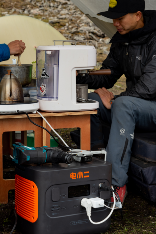 时刻充足的电量,也给一直在路上的大魏带来持续的安全感,他终于可以将理想的户外生活统统打包进了他的crag van。 在大魏的汽车后备箱,我们能看到笔记本电脑、便携冰箱、野营炉灶、咖啡机、投影仪、无人机等电器和电子设备。无数清晨,大魏习惯用咖啡机泡一杯咖啡,惬意地开始新的一天探险;当夕阳褪去,兴致来临,他常常拉起幕布,和朋友看一场露天电影。