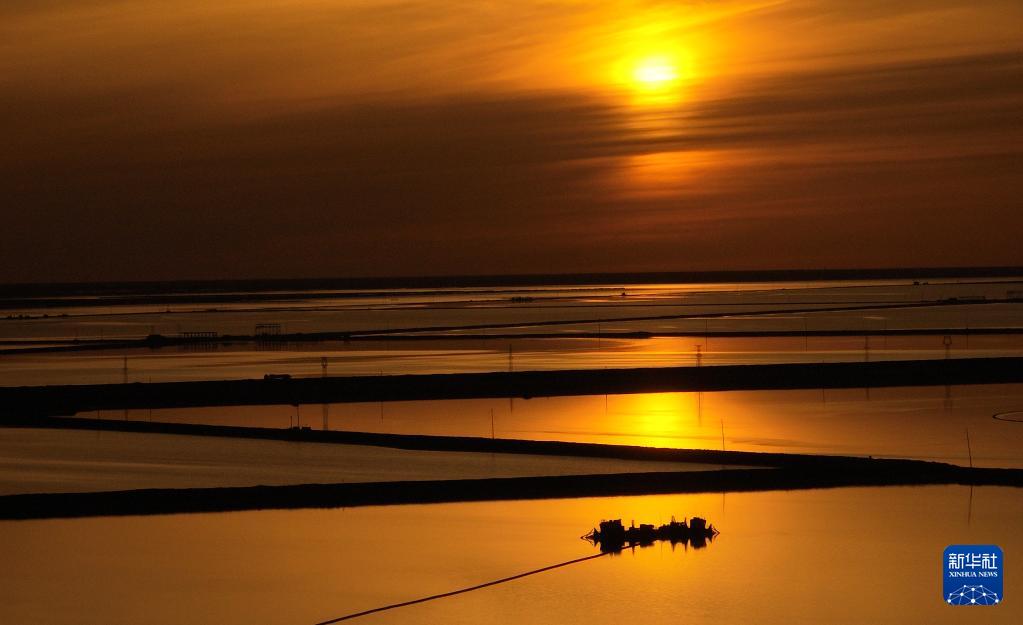 这是6月8日在察尔汗盐湖拍摄的一艘采盐船(无人机照片)。