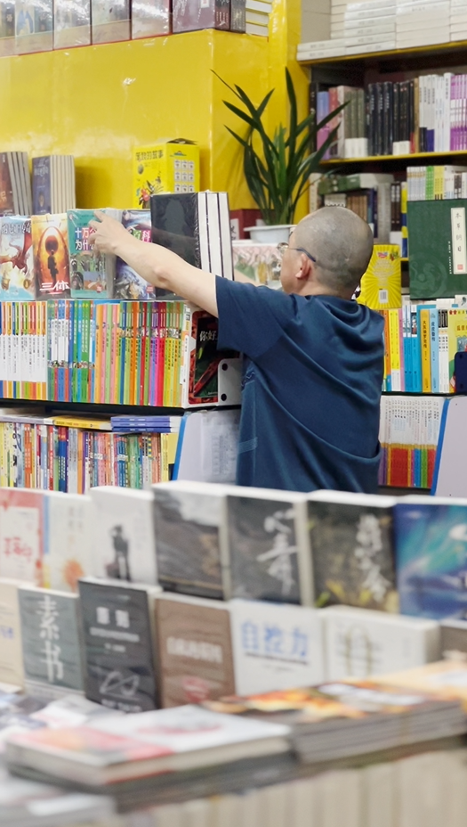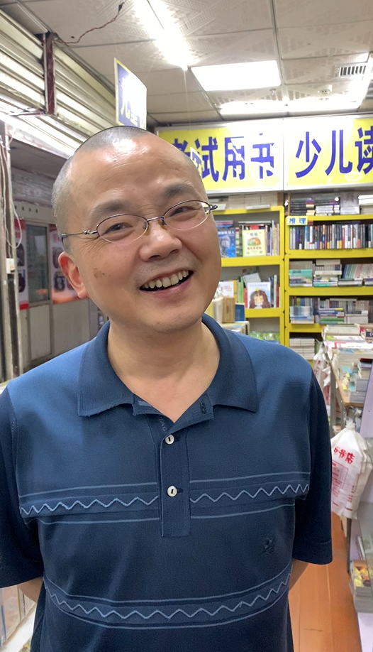 △定王台书市 5月25日下午5点多,听到动静,张先生从书店角落里探出头来。他戴银丝边眼镜,穿深蓝色polo衫,笑眯眯的,很儒雅的样子。今年48岁的张先生,22年前从国营单位退出后租下了定王台的一个门面,从此一直经营这家书店。 22年的时间,定王台慢慢摘下了长沙最著名、最火热的书市的标签。生意最好的那几年,张先生的门面从一个扩张到了两个,进货的品类也逐渐增多。像许多老派的文人一样,他喜爱纸质书。纸质书的触感、甚至油墨散发出的香味,都是电子书无法给予的。