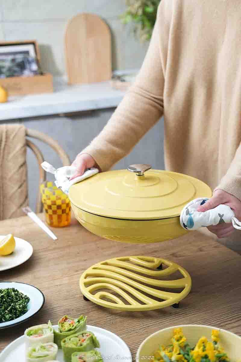 在他看来,东方不是一个词,而是无数个细节的打磨,无数个日夜的行动。就拿归禾器的东方传统色珐琅釉彩来说,与市场上的色彩总能轻易区分开。周亚蓬分享道,以苏梨黄为例,归禾器揣摩过很多遍,与十几年调釉经验的大师傅一起,取比利时、日本等优质产源地的上佳矿物釉粉,一遍遍配比尝试,调了近百次。终于,还原了遇见元阳梯田的那个清晨,晨曦初绽的暖阳,映照梯田水面温柔荡漾的灿光。也惊喜发现,完美复刻出了儿时秋日庭院,梨子黄时的累累温暖。希望选择了归禾器的用户,在烹饪时光中,在双手的触碰摩挲中,能够感受到这份东方意境的温雅,端锅上桌也是美景画卷一副,感受到东方风土亲近与温暖。 |