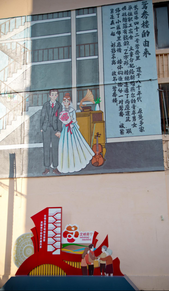 在长堽村,创意涂鸦墙提升了老旧街道的人文艺术气息。