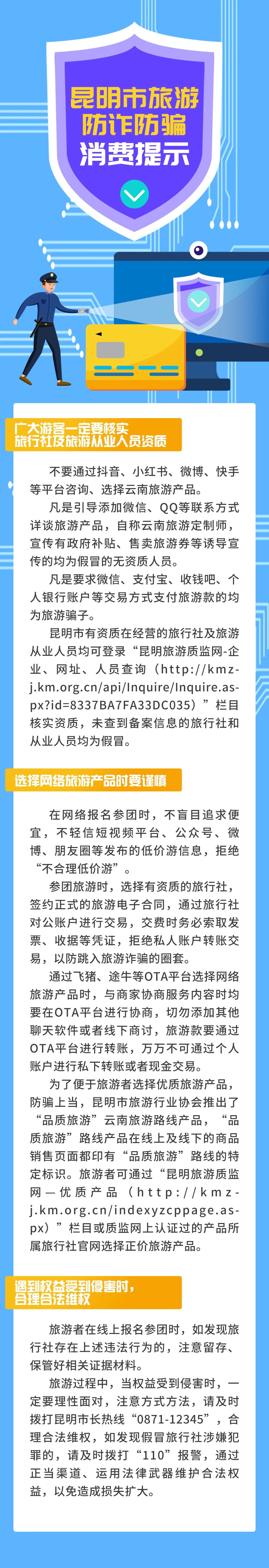 昆明市旅游监察支队再次发布《旅游防诈防骗消费提示》