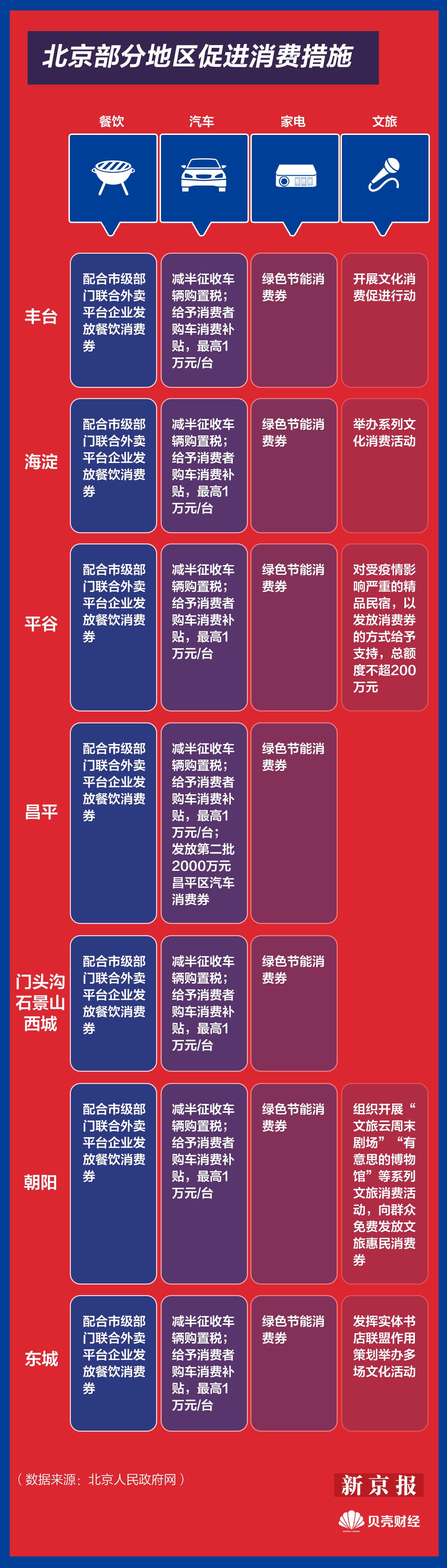 1.多地消费券发放金额超亿元 覆盖餐饮、汽车、家电数码多领域 6月2日,北京发布《北京市统筹疫情防控和稳定经济增长的实施方案》,提出通过新征集一批绿色节能消费券参与企业、给予购车补贴、联合外卖平台企业发放餐饮消费券等多项刺激消费举措。 此外,部分地区根据各区特色进一步挖掘消费潜力。平谷区发放民宿消费券刺激旅游经济;东城区利用实体书店联盟,举办多场文化活动,提振综合消费。