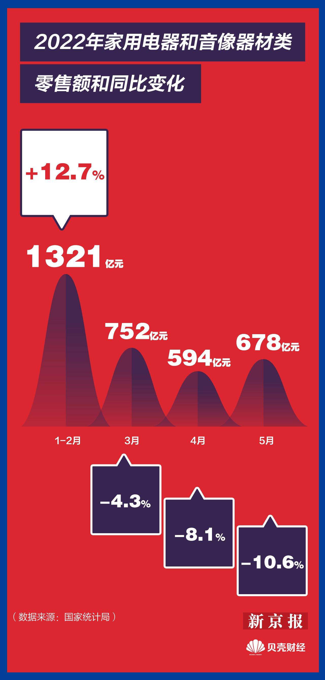 3. 五省份12城刺激家电消费 京、沪、苏进一步释放绿色节能消费潜力 5月31日,国务院发布《国务院关于印发扎实稳住经济一揽子政策措施的通知》,提出稳定增加汽车、家电等大宗消费。 今年3月至5月家电零售额连续下降,5月我国家用电器和音像器材类零售额为678亿元,同比下降10.6%。
