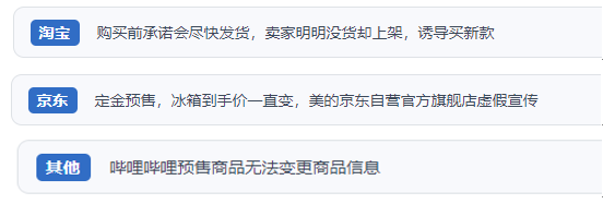 “人民投诉”用户投诉“618”期间超长预售期、虚假销售问题。(“人民投诉”平台截图) “618”期间,“人民投诉”平台用户讲述了自己经历的糟心预售——“5月31日下单,商品页未标注预售,谁知付款后客服突然表示,发货需等待20天。”“购买前承诺会尽快发货,结果迟迟不发货,后客服说没货并推荐其他新款,为啥明明没货却上架?”“某电商平台一款全款预售的面霜,到了约定发货时间,商家称‘原料缺货,无法生产’。”消费者直呼上当。 不久前,中消协在其发布的《“新”消费领域投诉情况专题报告》中提到,有些网络经营者利用不公平格式条款减免自身义务和责任、加重消费者责任。如一些网络商家对预售商品设置超长预售期,同时设置预售商品不退换、预付金不退等不公平格式条款。点名对商品超长预售期说“不”。 以次充好、货不对板 退货咋就这么难? 每年的“618”年终大促对商家都是一次体量较大的集中出货期、清仓期,对于消费者,在获得便利和实惠的同时,也放大了买到残次品、不合格产品的风险。而在遇到货不对板、以次充好的情况后,接下来退换货的旅程往往又是坎坷崎岖。