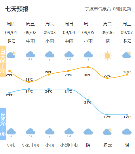 台风“轩岚诺”虽然小但是结构紧实,台风眼清晰可见 >>> “轩岚诺”对宁波影响大吗? 从市气象台目前的预报来看,“轩岚诺”给宁波带来的影响主要体现在大风和持续时间上,可能会持续至9月5日。 9月3日到5日,所有渔场风力将从12级增强到14-16级,台风中心经过的海面风力可达17级以上,沿海海面风力增强到9-11级。 作为一个“合格”的台风,除了大风,雨水也是少不了的。受“轩岚诺”外围环流影响,9月1日夜里到5日,宁波会有明显降水过程,大家要注意防范。