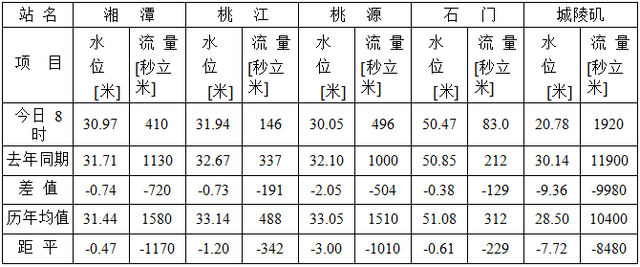 红网时刻岳阳9月7日讯(通讯员 彭飞宇)根据当前旱情形势及后段发展趋势,岳阳市水文局9月7日发出《关于将水文测报应急响应提升至Ⅲ级的通知》,决定自9月7日8时将水文测报Ⅳ级应急响应调整为水文测报Ⅲ级应急响应并发布最新水旱情及趋势分析。 今日8时,三峡水库水位148.13米,入库流量7800秒立方米,出库流量8150秒立方米。洞庭湖城陵矶站水位20.78米,较历年同期均值水位偏低7.72米。三口四水合计入湖流量1430秒立方米,其中四水1140秒立方米、三口299秒立方米,出湖流量1920秒立方米。四水各主要控制站水位较历年同期均值比较水位均偏低,其中沅水桃源站水位较历年同期均值偏低3米,详见表1。 表 1:四水及湖区主要控制站9月7日8时水位流量与历年同期比较表